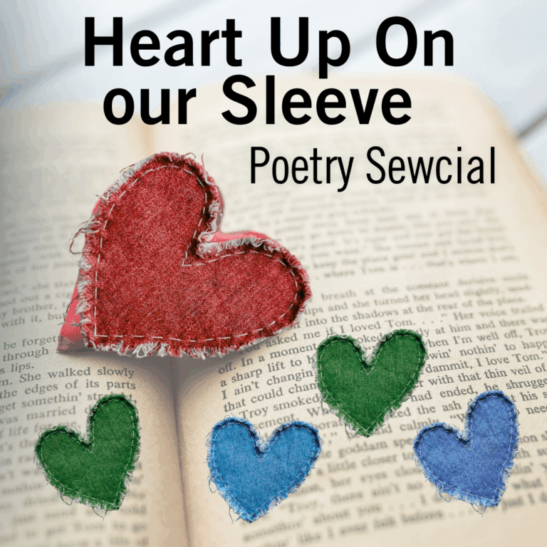 For this Poetry “Sewcial” we’ll manifest the sentiment of wearing your heart upon your sleeve in both words and fabric. Participants are invited to sew physical fabric hearts onto a piece of their own clothing, with guidance provided by textile artivist Zoë Van Nostrand while listening to local poets read aloud their personal & vulnerable works, readings coordinated by poet S. E. Barden. Participants should bring 1-2 clothing items from their own closet; materials and instructions for how to hand-sew a fabric heart will be provided. While the audience engages in this form of physical transformation, we simultaneously create a precious space of active listening for each poet performer. Readings by local writers will be 5-8 minutes long each. Please plan to stay for the full program and honor the sharing of our hearts.